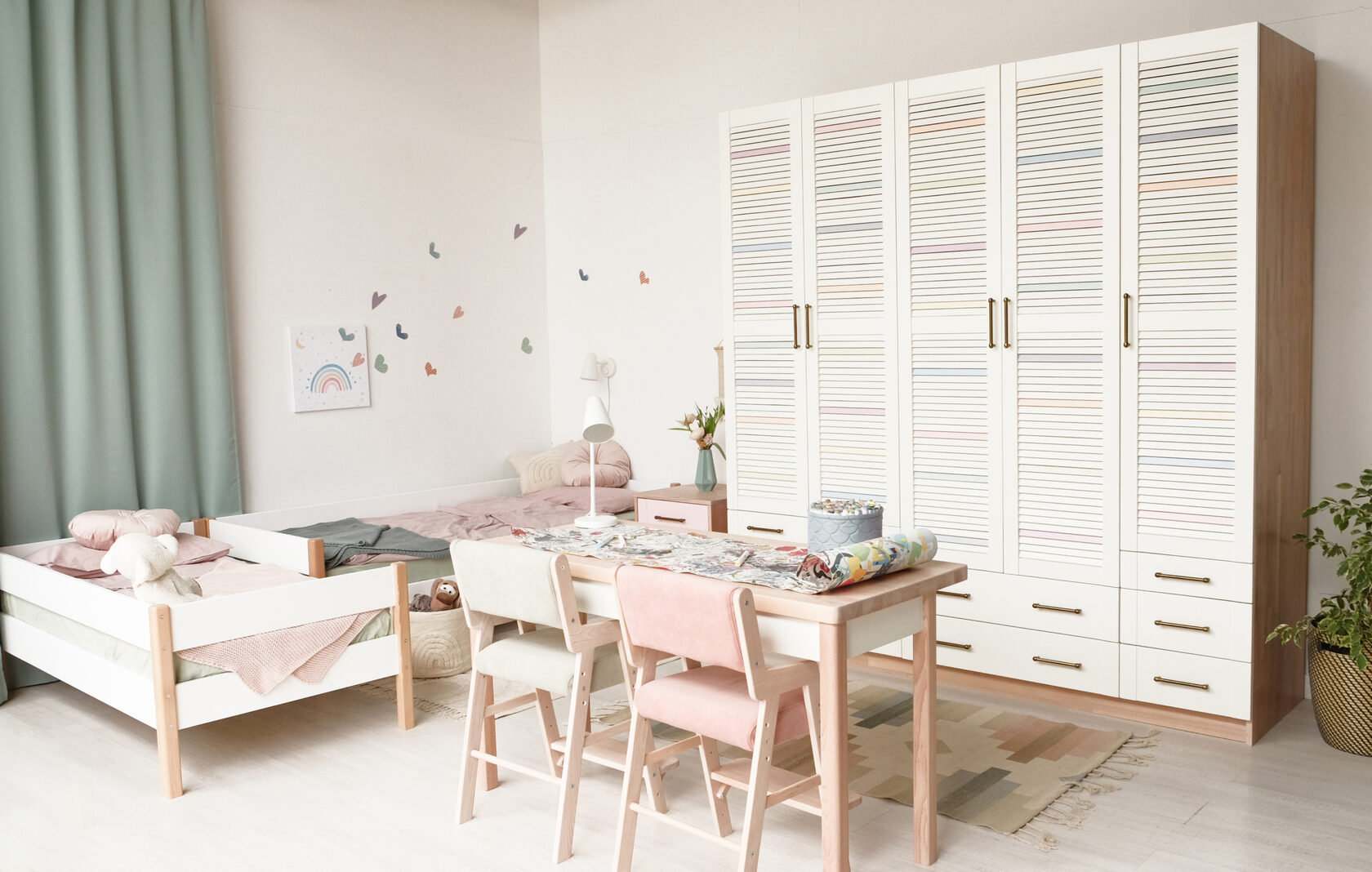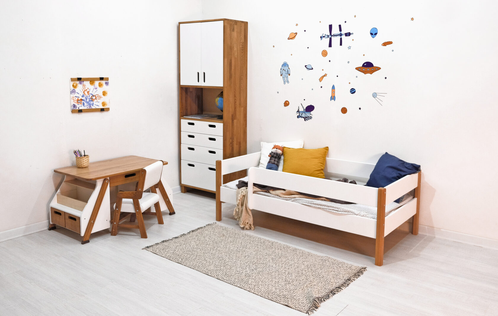 Меня полностью устраивает вся ваша мебель, шкаф, кровать с большими выдвижными ящиками, стульчик и парта.