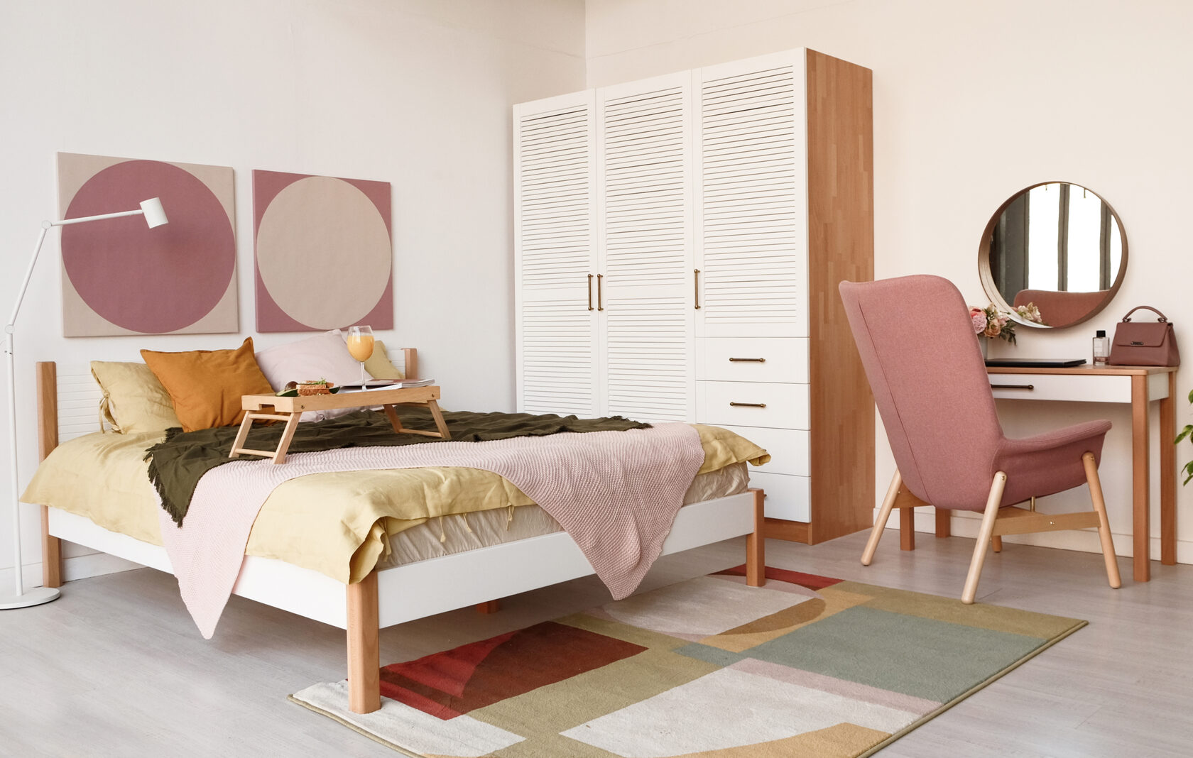 Всё отлично)) Шкаф и кровать получились в едином стиле.